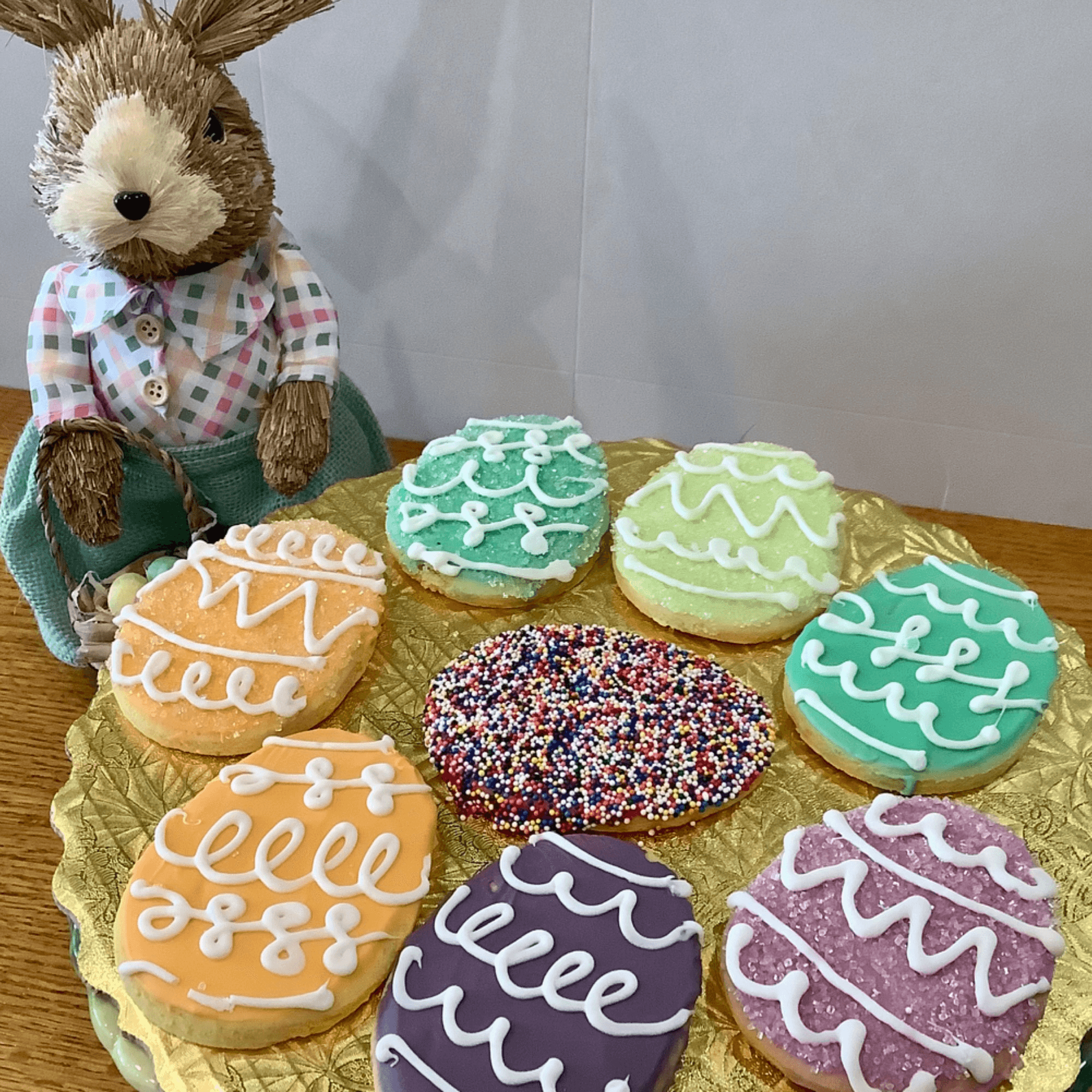 Mini éclair, napoleons, fruit tarts, mousse cups (with various flavors, includes: raspberry, dark chocolate, milk chocolate, white chocolate, gf option available) . Cream puffs, lemon poppy cake, pistachio cake, chocolate ganache cake, raspberry chocolate cake, and lemon bars.