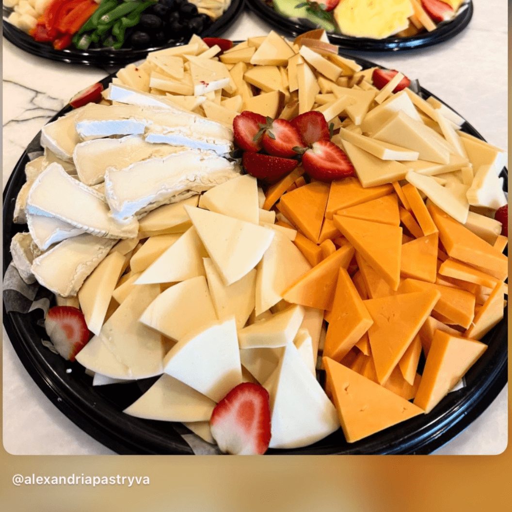 An sssortment of creamy, ripened cheeses: Indiana and California chevres with herbs, New York cheddar, smoked colby longhorn, wisconsin dells swiss and vermont sharp to be garnished by fresh seasonal fruits. Serves 10 people