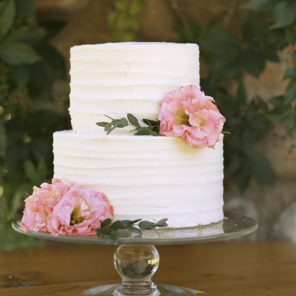 Three layers of yellow cake layered with butter cream made with fresh raspberries. Topped with buttercream icing.