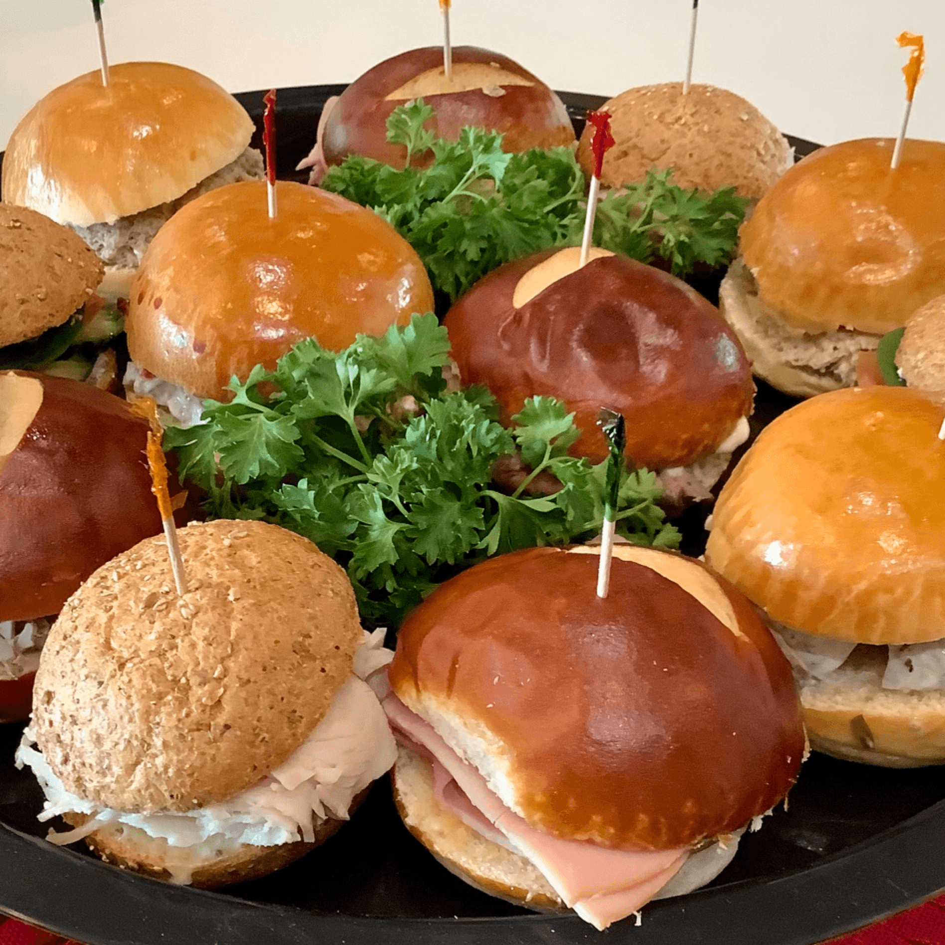 Per Dozen. Ham, Veggie, Tuna, Chicken Tarragon, Turkey and *Roast Beef on Assorted Rolls.