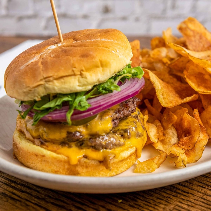 Two all beef patties, thousand island, american cheese, lettuce, pickles, red onion, potato kaiser